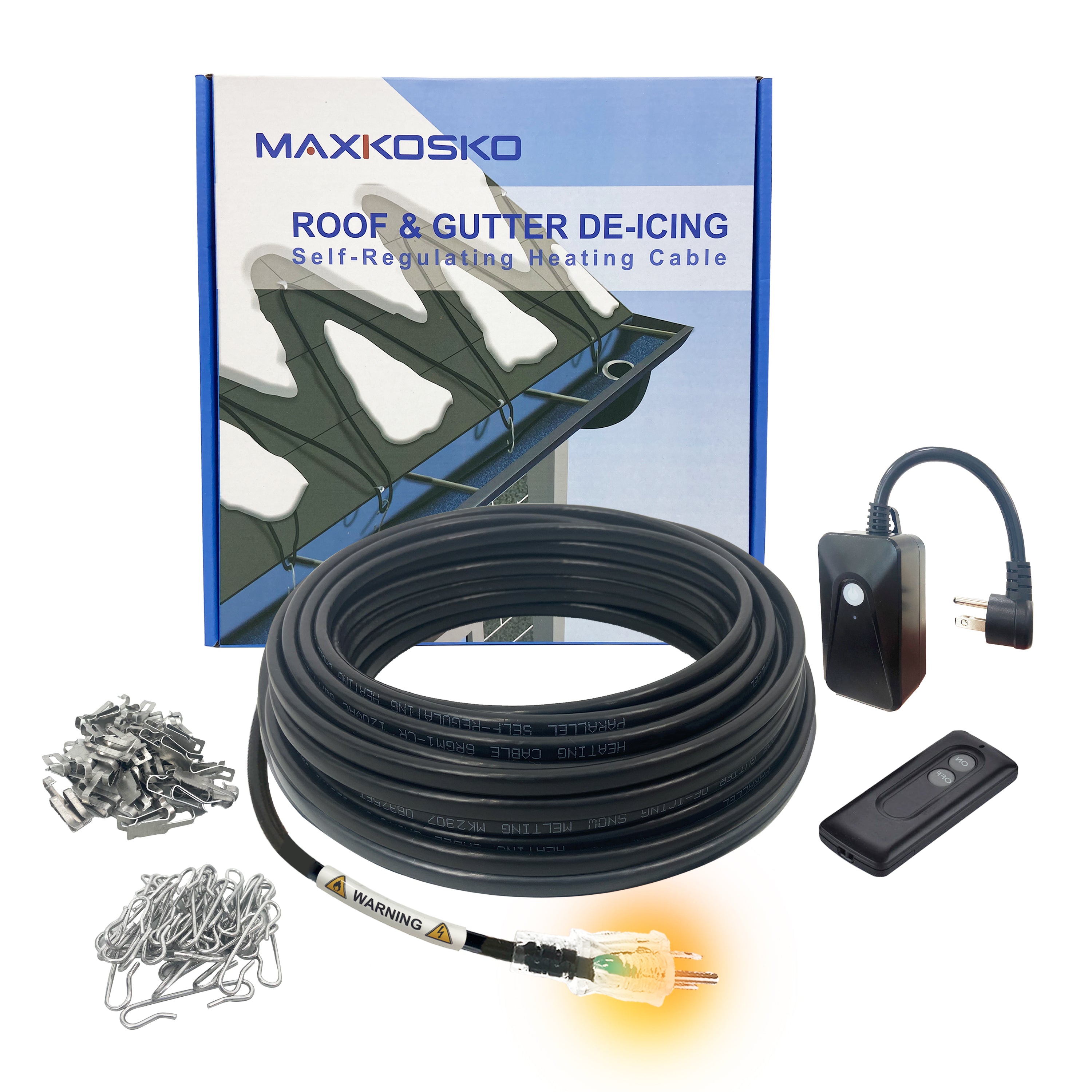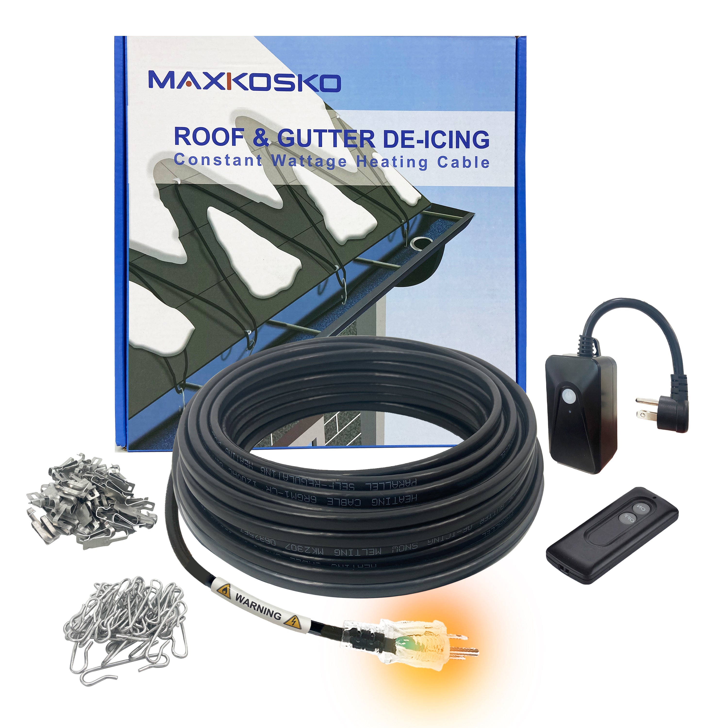 Maxkosko gutter heat trace cable, constant wattage heat tape, clips and spacers included, 10ft power cold, 7w/ft
