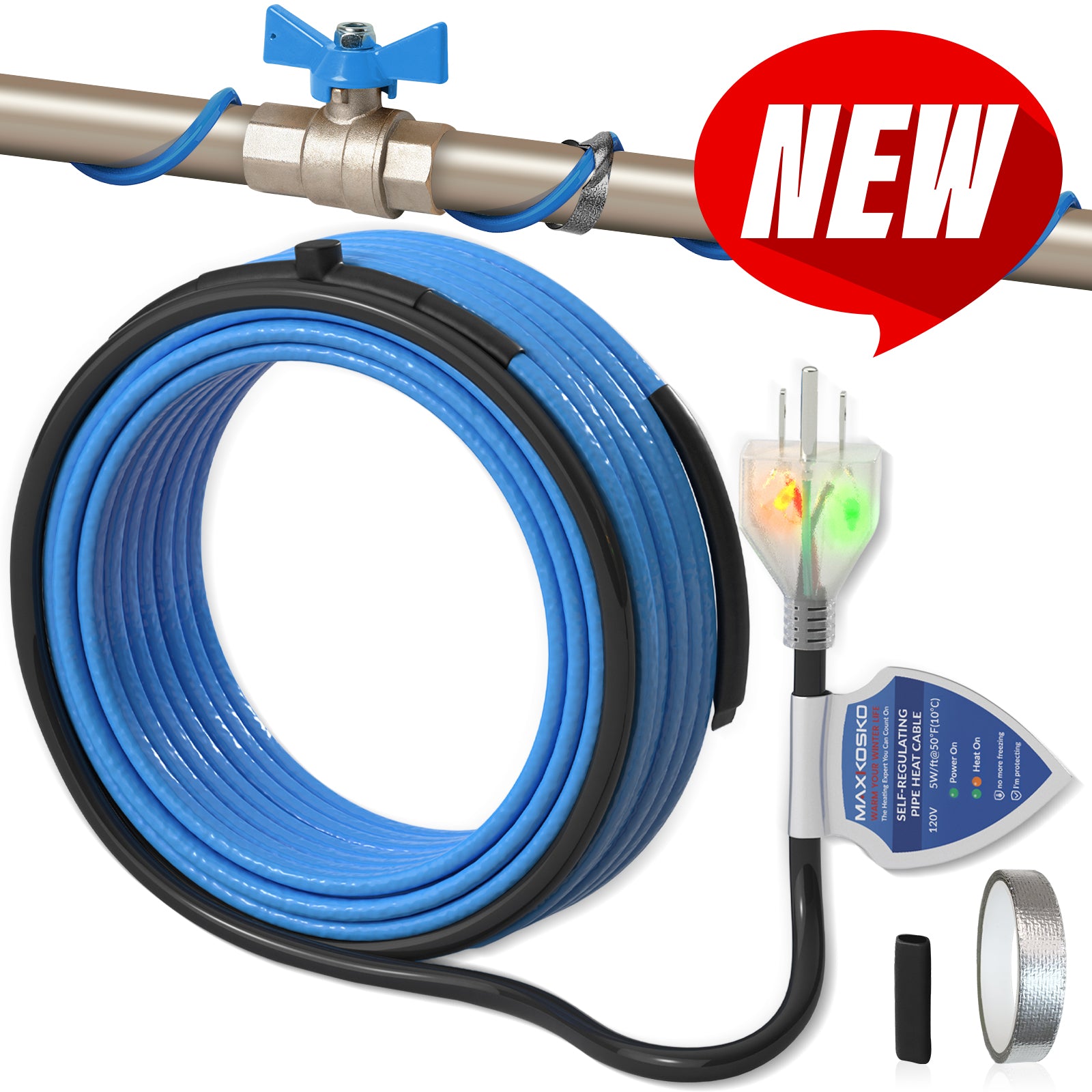 Maxkosko heat trace for pipe freeze protection, self-regulating for metal and plastic water pipe, 5w/ft