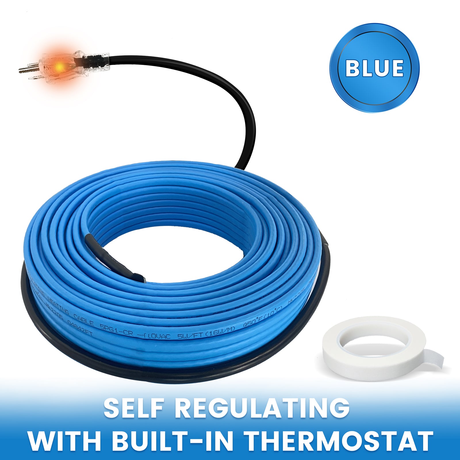 Maxkosko heat trace for pipe freeze protection, self-regulating for metal and plastic water pipe, with thermostat, 5w/ft