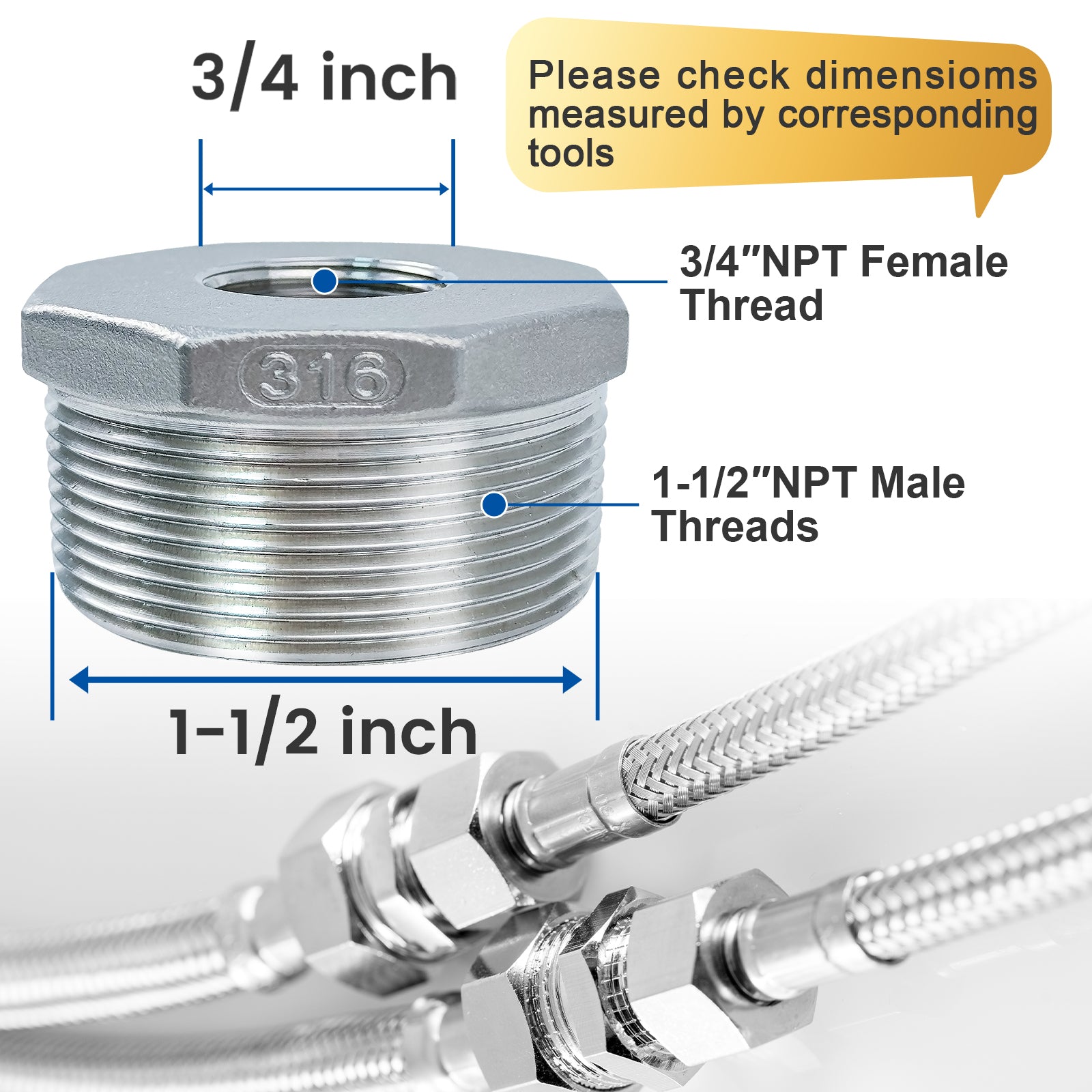 1", 1-1/4", 1-1/2", and 2" NPT Male to 3/4" NPT Female.