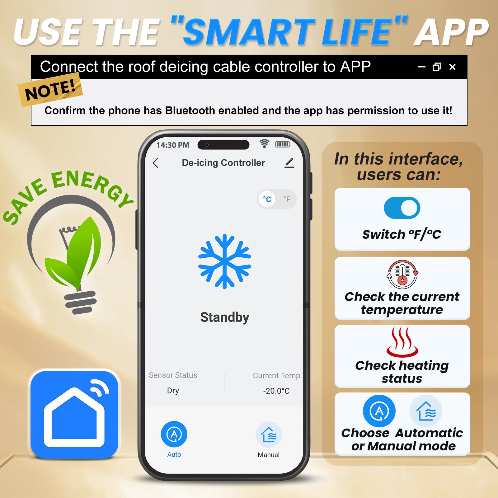 Gutter Heat Tape Controller, Automatic On/Off System, App Control, Energy Saving