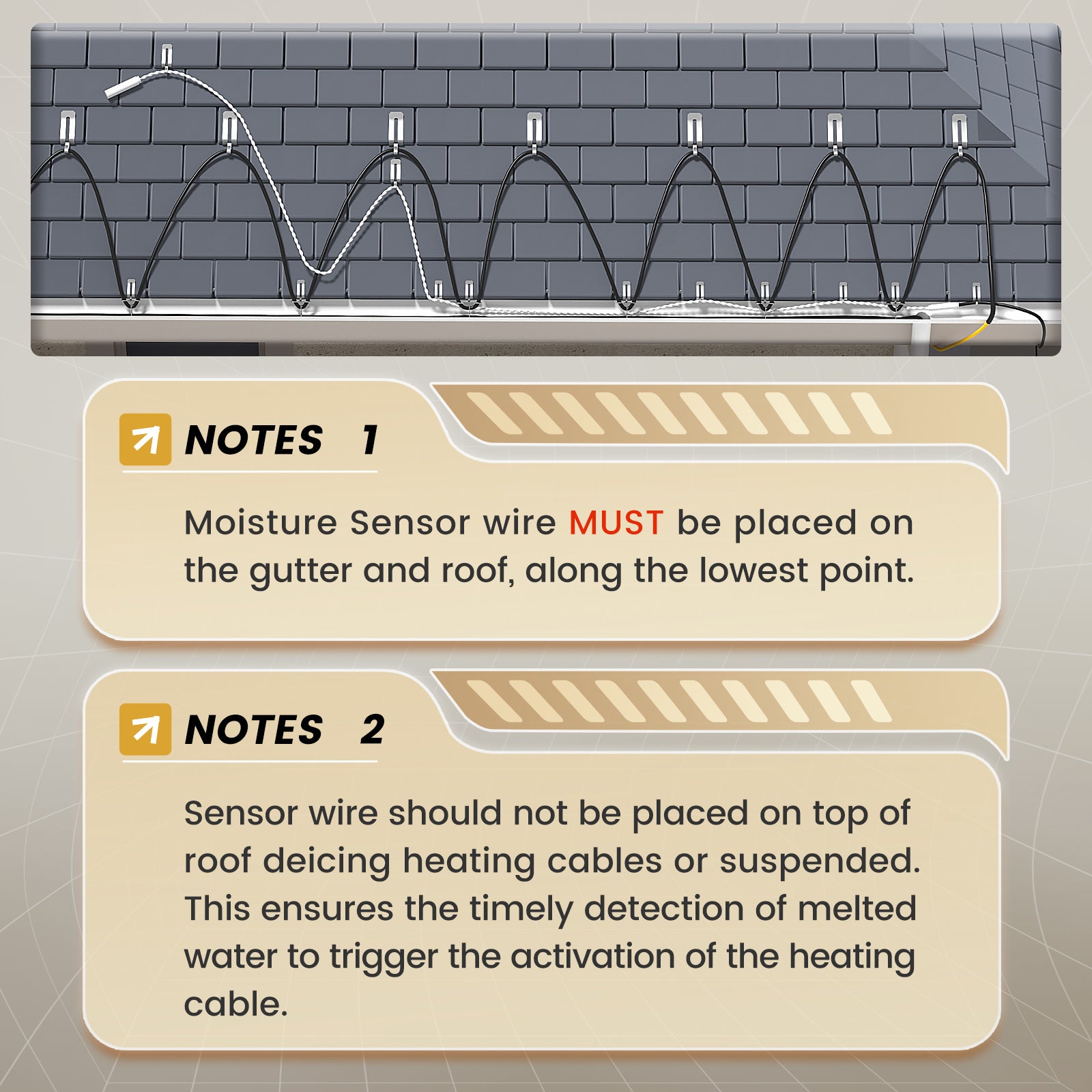 Automatic & Safe Operation: This controller is specifically designed to prevent overheating of roof heat tape, reducing fire risks. It automatically activates when temperatures drop to 38°F and snow begins to melt, and shuts off at 46°F to ensure safety and energy efficiency.