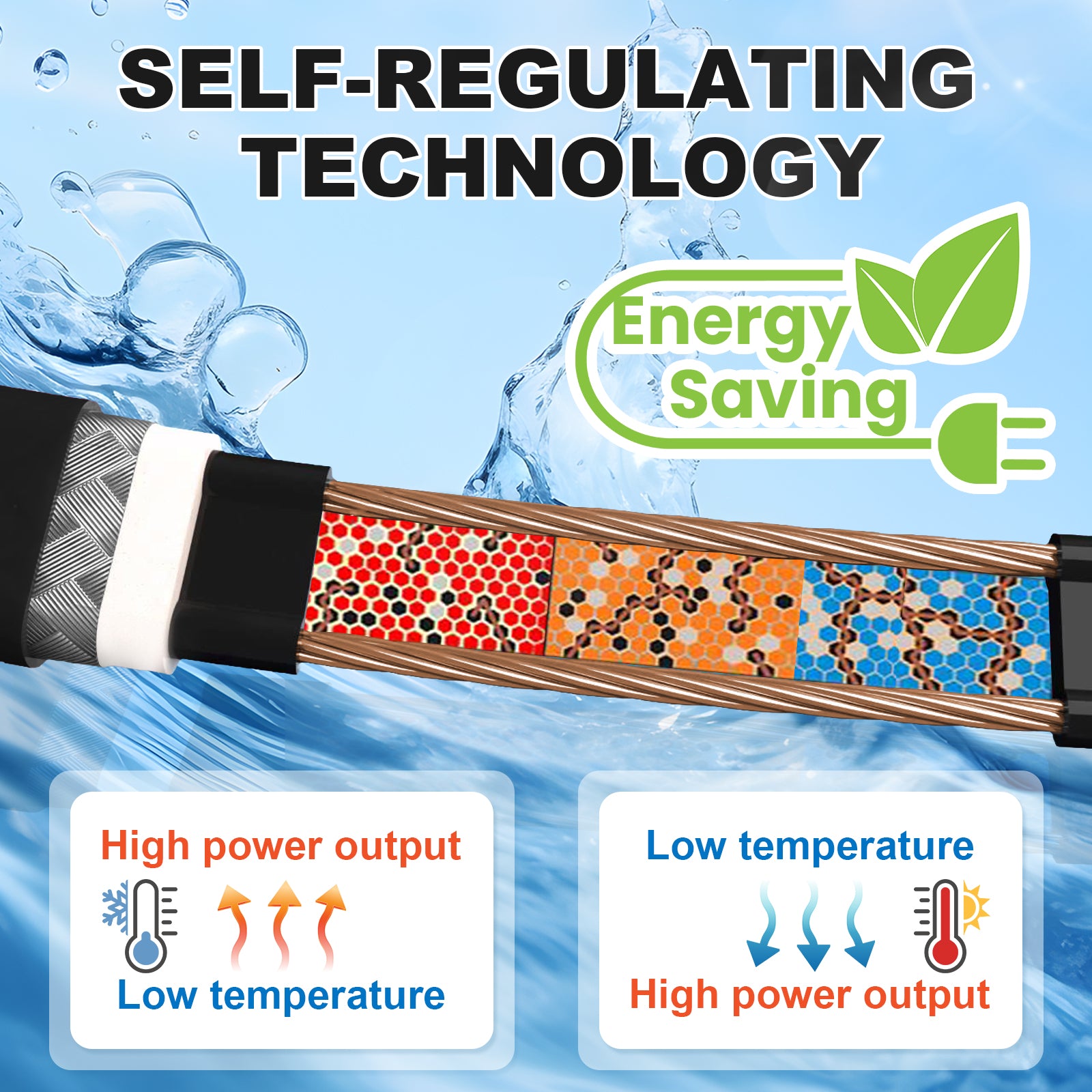 Utilizing self-regulating technology, the cable adjusts its heat output based on the surrounding temperature.