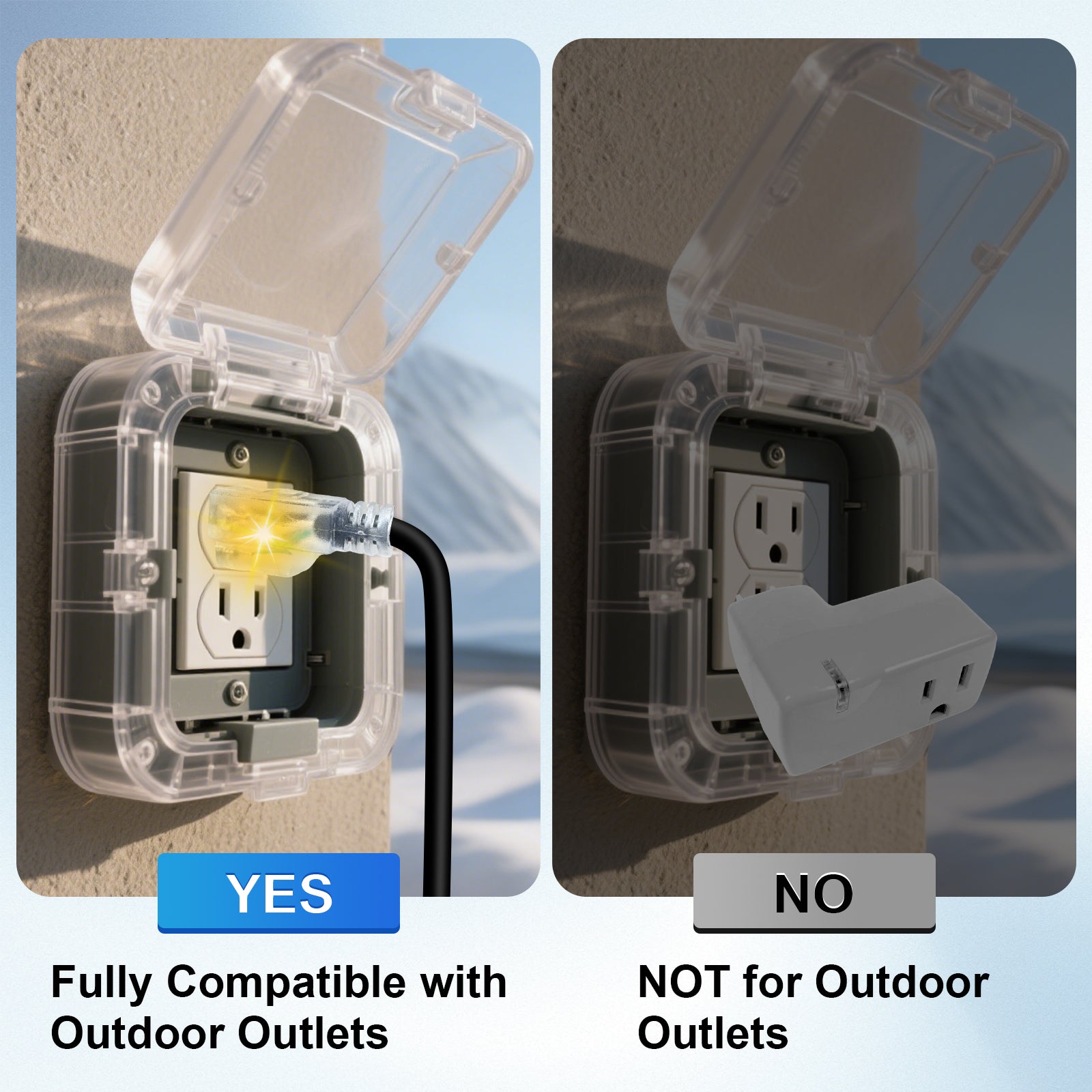 ● Slim & Weatherproof: Fits covered outdoor outlets.