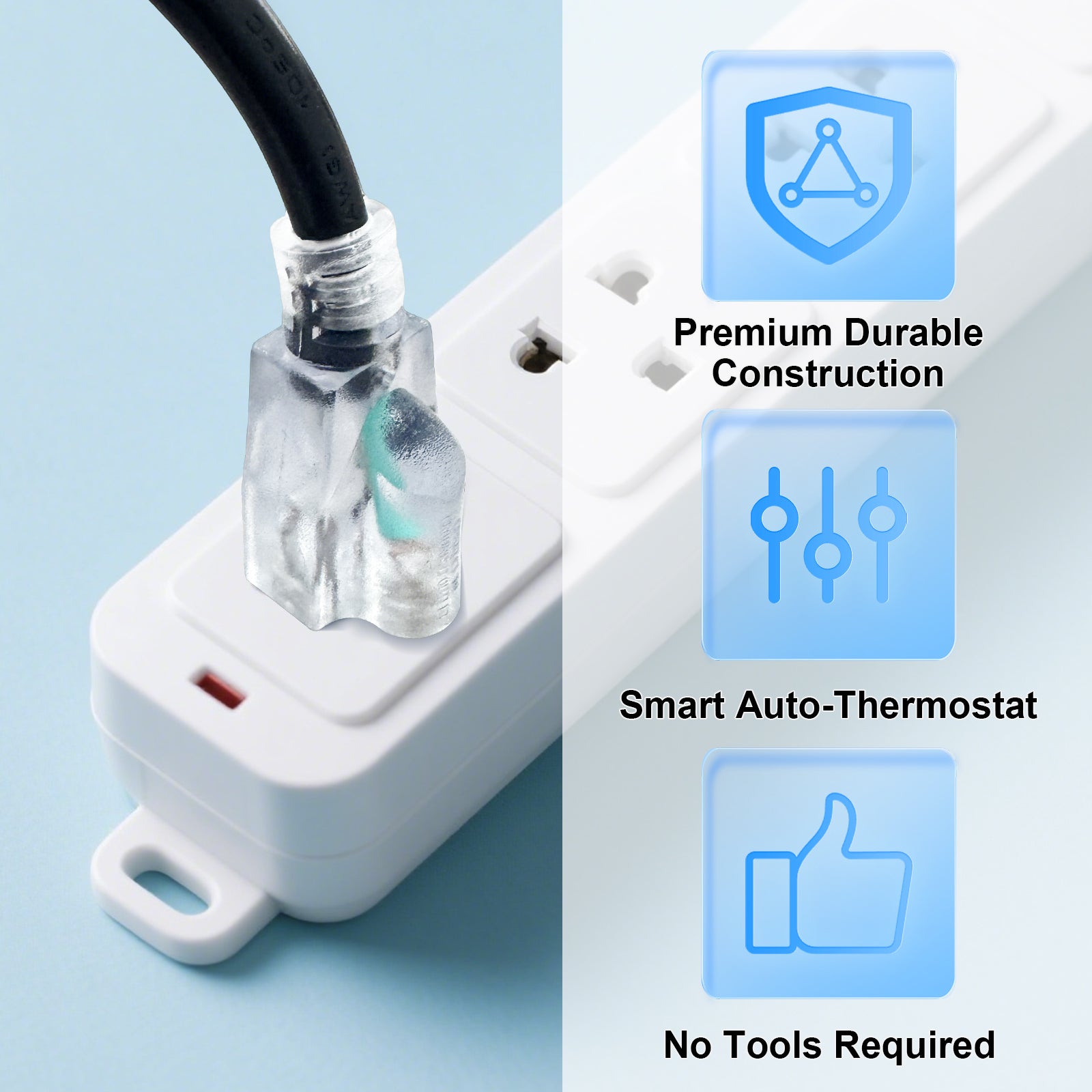 MAXKOSKO Temperature Controlled Extension Cord automatically manages heater power in freezing weather.