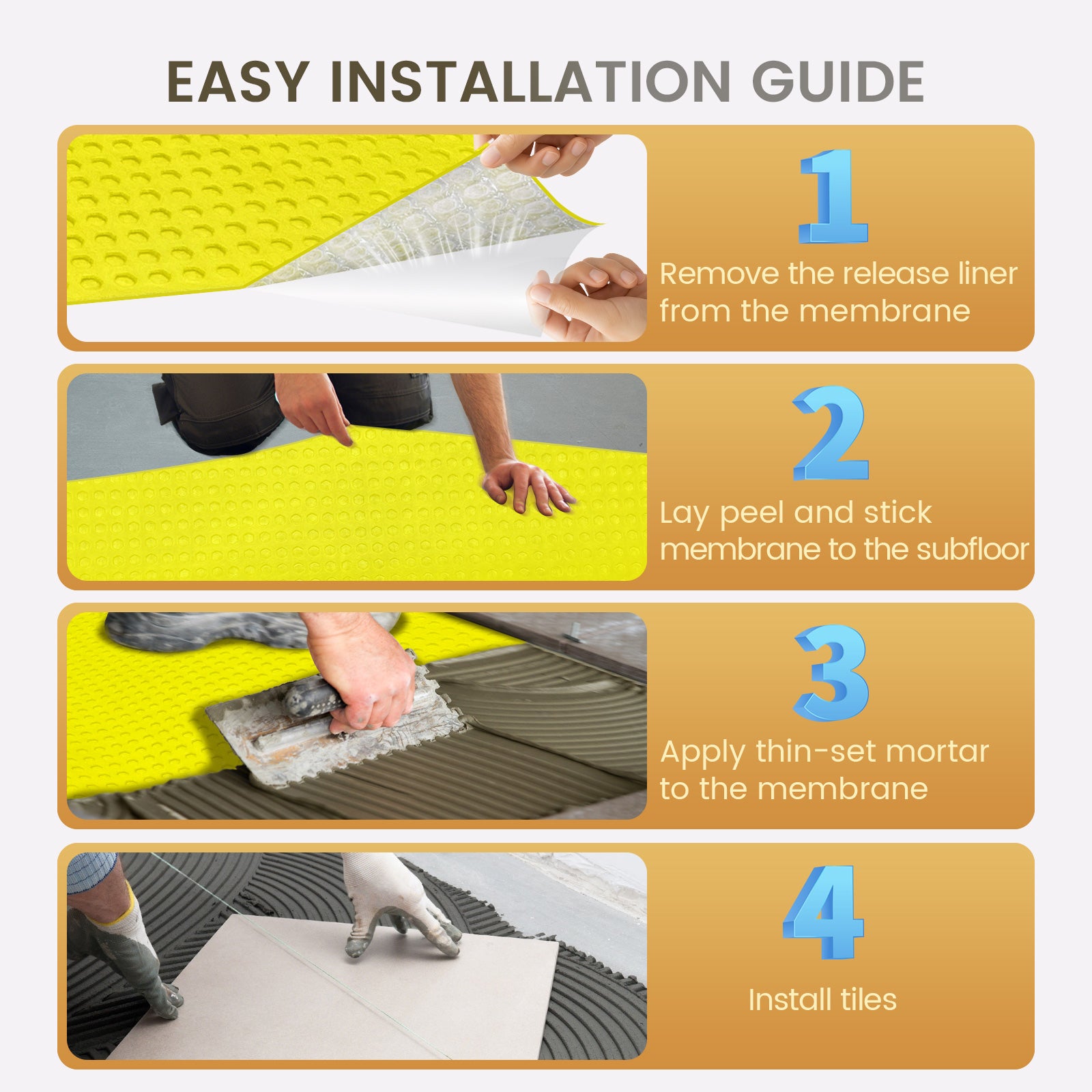 ● Easy Peel & Stick Installation: Self-adhesive uncoupling membrane roll eliminates extra adhesives. Just peel and stick! Quick to install as a flooring underlayment for bathrooms, kitchens, and basements.
